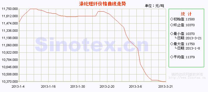 本周(3.18-3.22),滌綸短纖穩(wěn)中偏弱。前兩日橫盤整理,周三受隔夜油價(jià)大跌打擊,滌短市場(chǎng)重現(xiàn)跌勢(shì),部分報(bào)價(jià)下調(diào),但幅度較小。聚酯大盤信心不足,市場(chǎng)觀望猶豫,剛需小單補(bǔ)貨為主。當(dāng)前,滌綸企業(yè)產(chǎn)銷率多數(shù)維持在30%-50%,行業(yè)的開機(jī)負(fù)荷基本維持,企業(yè)的庫存量繼續(xù)升高至二十多天的水平。上游原料行情走勢(shì)偏弱不穩(wěn),成本支撐的力度不足,下游紗布企業(yè)心態(tài)不佳,對(duì)于原料采購(gòu)仍多是按需補(bǔ)貨為主,采購(gòu)量不多。不過臨近結(jié)算出臺(tái),市場(chǎng)整體弱勢(shì)維穩(wěn)。當(dāng)前1.4D×38mm滌綸短纖市場(chǎng)中心價(jià)在10330元/噸(-70),跌幅將至0.67%。自2月下旬開始的本輪滌綸短纖下跌行情,至今已累計(jì)下跌1370元/噸。