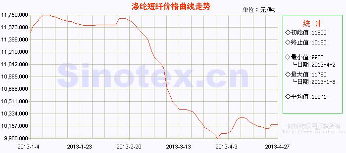 本周原油大幅反彈帶動聚酯原料行情好轉(zhuǎn),給予滌綸短纖市場成本方面的支持;下游五一節(jié)前備貨補庫,拉動成交量有所回升,滌綸短纖先抑后揚。本周前期滌綸短纖市場穩(wěn)中偏弱,廠家多平報,商談優(yōu)惠普遍,交投氣氛僵持。周四、周五原油持續(xù)大漲,滌短市場報價普漲,成交重心上移,滌短企業(yè)出貨為主,產(chǎn)銷率大增。周六、周日,滌短市場詢盤氣氛減弱,橫盤整理,滌短生產(chǎn)企業(yè)即期產(chǎn)銷率在100-200%之間。周日,1.4D×38mm滌綸短纖市場價格運行在10180元/噸,本周累計微幅上漲10元/噸,漲幅0.09%。四月份,滌綸短纖行情跟隨聚酯原料震蕩調(diào)整,累計上漲100元/噸,月漲幅0.99%。