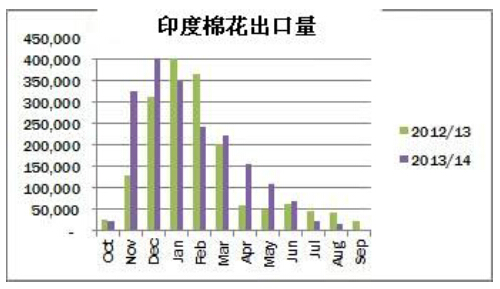 8月印度棉出口同比下降。8月,印度皮棉出口量為16144噸,7月份為23683噸,去年同期44297噸,同比減63.5%,當(dāng)月主要出口目的地為孟加拉(78.2%)和中國(guó)(13.3%);去年10月至今年8月底出口總量195.66萬(wàn)噸。