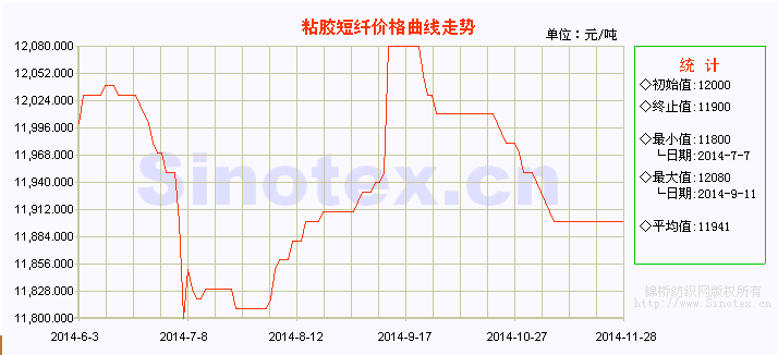 【錦橋紡織網(wǎng)專(zhuān)稿】2014年11月,粘膠短纖價(jià)格走勢(shì)先降后穩(wěn),行情狀態(tài)疲弱乏力,市場(chǎng)缺乏亮點(diǎn)。上旬,粘膠短纖行情延續(xù)10月下旬的弱勢(shì)下調(diào)狀態(tài),11月3-7日,價(jià)格累計(jì)下調(diào)50元/噸至11900元/噸。中下旬,粘膠短纖報(bào)價(jià)基本維持穩(wěn)定,但實(shí)際成交重心略有松動(dòng)。期間,因澳洋及銀鷹檢修,中端價(jià)格獲得支撐相對(duì)抗跌。中端市場(chǎng)商談重心維持在11800-11900元/噸,高端總體維持在12000-12100元/噸。17日,部分粘膠短纖廠家報(bào)價(jià)有百元拉漲,但市場(chǎng)反饋平淡,收效甚微,成交重心仍維持前期水平。而下游紗廠因自身紗線(xiàn)訂單及資金緊張壓力,采購(gòu)原料普遍謹(jǐn)慎縮量,維持剛需補(bǔ)貨節(jié)奏;并且市場(chǎng)普遍對(duì)后期抱著穩(wěn)中偏弱預(yù)期,采購(gòu)原料維持3-7天正常供應(yīng)量補(bǔ)貨,少有中大單采購(gòu)意向。下旬部分廠家裝置檢修逐漸完成,恢復(fù)生產(chǎn)。月末,粘膠短纖行業(yè)開(kāi)工率至92%以上,后期仍有10萬(wàn)噸新項(xiàng)目蓄勢(shì)以待。粘膠短纖供應(yīng)增多,庫(kù)存逐漸上升。月末統(tǒng)計(jì):粘膠短纖價(jià)格累計(jì)下降50元/噸,降幅0.42%,周末運(yùn)行在11900元/噸,價(jià)格低于中國(guó)棉花價(jià)格指數(shù)CCindex328(現(xiàn)貨價(jià)格)2325元/噸,價(jià)差繼續(xù)縮小。