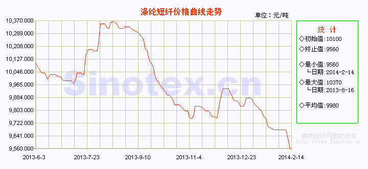 【錦橋紡織網(wǎng)專(zhuān)稿】春節(jié)假期后(2.8-14),聚酯原料偏弱勢(shì)調(diào)整,下游復(fù)工恢復(fù)緩慢,聚酯大盤(pán)整體氣氛疲軟,詢盤(pán)稀少,有價(jià)無(wú)市。滌綸短纖陰跌氣氛濃厚,價(jià)格重心不斷走弱。2月14日,1.4Dx38mm滌綸短纖價(jià)格運(yùn)行在9560元/噸(比當(dāng)日國(guó)內(nèi)3128B級(jí)棉花現(xiàn)貨價(jià)格低9888元/噸,價(jià)差擴(kuò)大),本周較春節(jié)前價(jià)格累計(jì)下跌120元/噸,跌幅1.24%。
