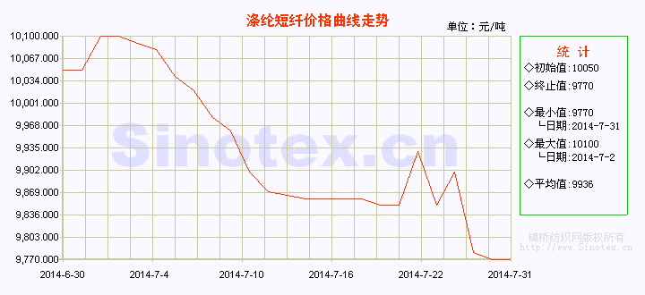 中石化2014年7月滌短結(jié)算價(jià):1.4D半光滌短10200元/噸;1.2D有光滌短10800元/噸,較上月漲200元/噸。