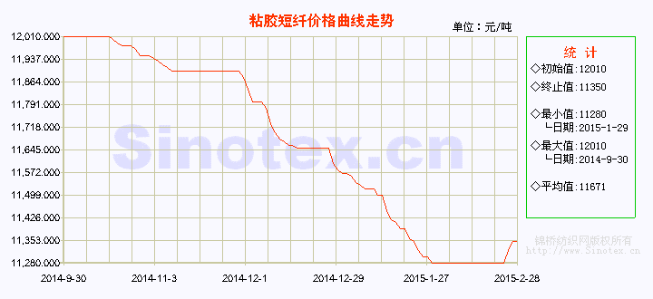 【錦橋紡織網(wǎng)專稿】2015年2月,粘膠短纖市場(chǎng)價(jià)格止跌企穩(wěn),并在月底觸底小幅反彈。月初至春節(jié)期間,粘膠短纖市場(chǎng)價(jià)格維持平穩(wěn),結(jié)束了長(zhǎng)達(dá)4個(gè)月的弱勢(shì)陰跌行情,1.5Dx38mm粘膠短纖市場(chǎng)均價(jià)穩(wěn)定運(yùn)行在11280元/噸;春節(jié)開(kāi)市后,市場(chǎng)漲價(jià)氣氛醞釀,部分報(bào)價(jià)小幅上漲70元附近。市場(chǎng)總體心態(tài)向好,顯露出繼續(xù)反彈的勢(shì)頭。2月統(tǒng)計(jì):1.5Dx38mm粘膠短纖市場(chǎng)均價(jià)累計(jì)微幅上漲70元(0.62%)至11350元/噸,價(jià)格低于同期中國(guó)棉花價(jià)格指數(shù)CCindex328(現(xiàn)貨價(jià)格)2099元/噸,價(jià)差較上月縮小80元。