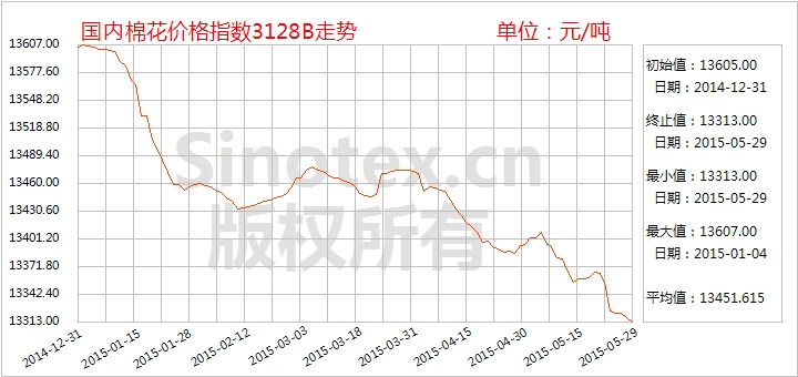 表一     20155月份紡織原料價(jià)格運(yùn)行明細(xì)表   單位:美分/磅、元/