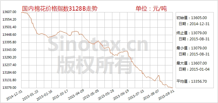 【錦橋紡織網(wǎng)專(zhuān)稿】2015年8月份,內(nèi)外棉花期貨價(jià)格先是觸底反彈,后跟隨金融股市大幅下跌。而國(guó)內(nèi)棉花現(xiàn)貨在供給充裕的格局下,依舊保持平穩(wěn)弱行的節(jié)奏,迎接棉花年度的到來(lái);儲(chǔ)備棉輪出悄然落幕;新花市場(chǎng)零星開(kāi)秤,價(jià)格低于去年。棉紗布尚未走出淡季,量?jī)r(jià)依舊疲弱,部分市場(chǎng)秋冬訂單詢(xún)價(jià)漸增。港口進(jìn)口棉和進(jìn)口紗數(shù)量較多,進(jìn)口紗價(jià)格上漲,但所占市場(chǎng)份額依舊較大,內(nèi)外價(jià)差縮小。