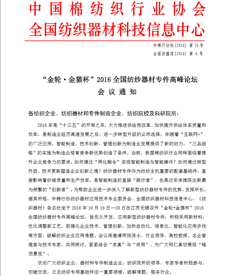 2016全國(guó)紡紗器材專件高峰論壇