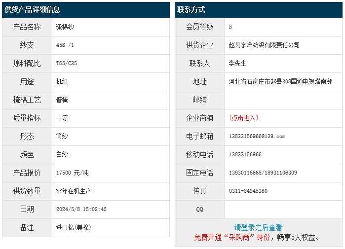 趙縣宇洋紡織滌棉紗報(bào)價(jià)