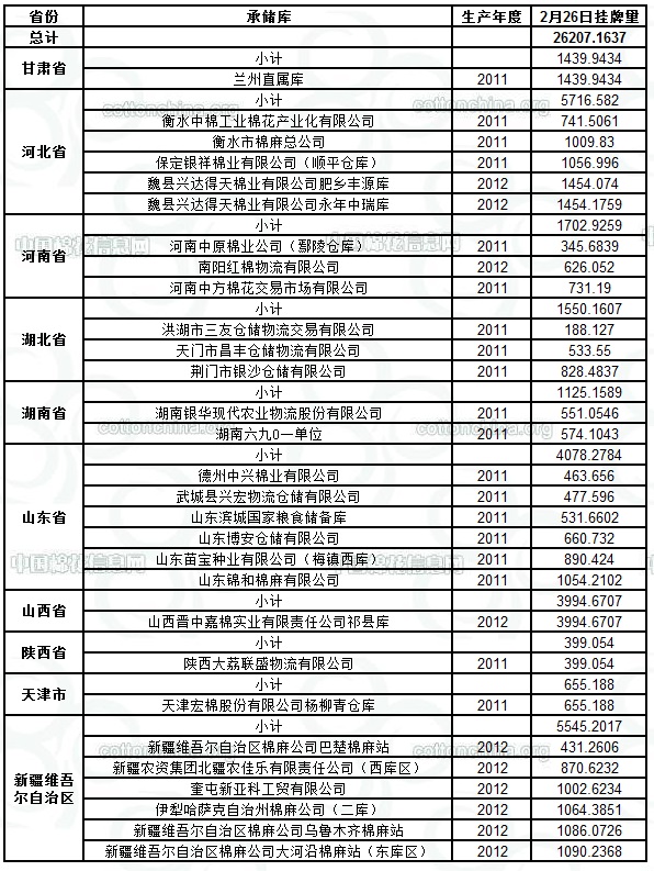 2月26日儲(chǔ)備棉計(jì)劃投放26207噸