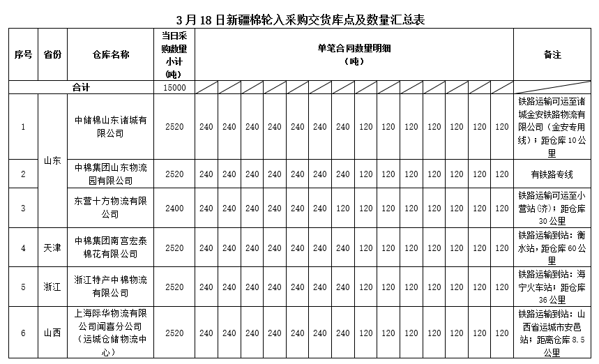 中國(guó)儲(chǔ)備棉管理有限公司定于2020年3月18日采購新疆棉15000噸(公定重量),最高限價(jià)12901元/噸(折標(biāo)準(zhǔn)級(jí)3128B價(jià)格)。具體庫點(diǎn)及數(shù)量如下: