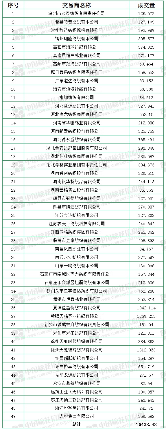 10月8日至11月17日累計(jì)成交總量470576.494噸,成交率61.38%。