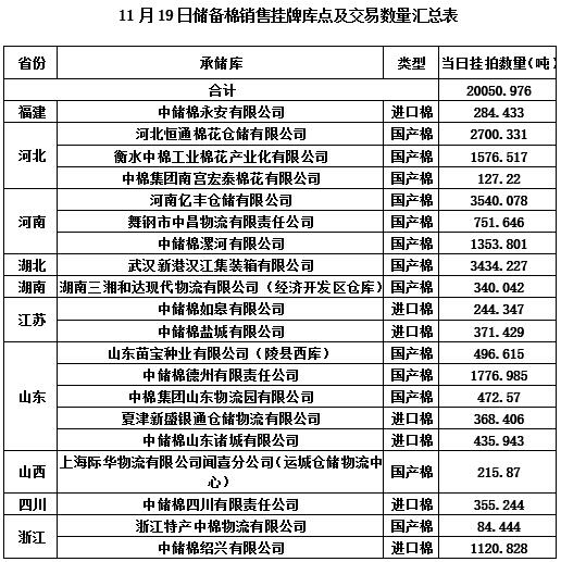 2、11月19日上市銷售儲(chǔ)備棉數(shù)據(jù)明細(xì)表(進(jìn)口棉)