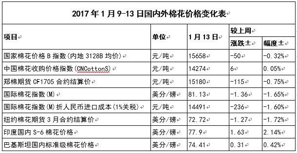 ——中國棉花市場周報(2017年1月9-13日)