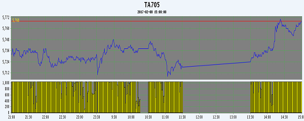 主力TA705合約當(dāng)日交易走勢
