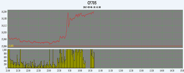 主力CF705合約當(dāng)日交易走勢圖