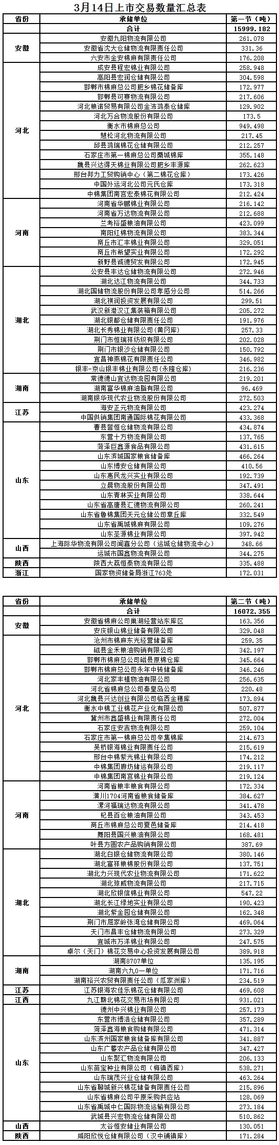 3月14日兩節(jié)共計輪出儲備棉32071.537噸。
