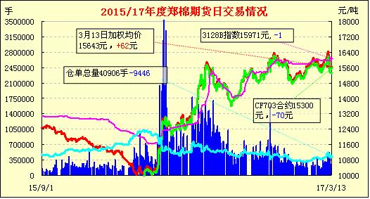 鄭棉期貨反彈受阻減倉縮量(03-13)