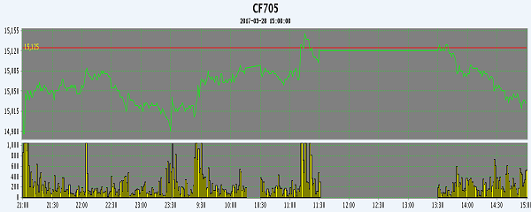 主力CF705合約當(dāng)日交易走勢圖
