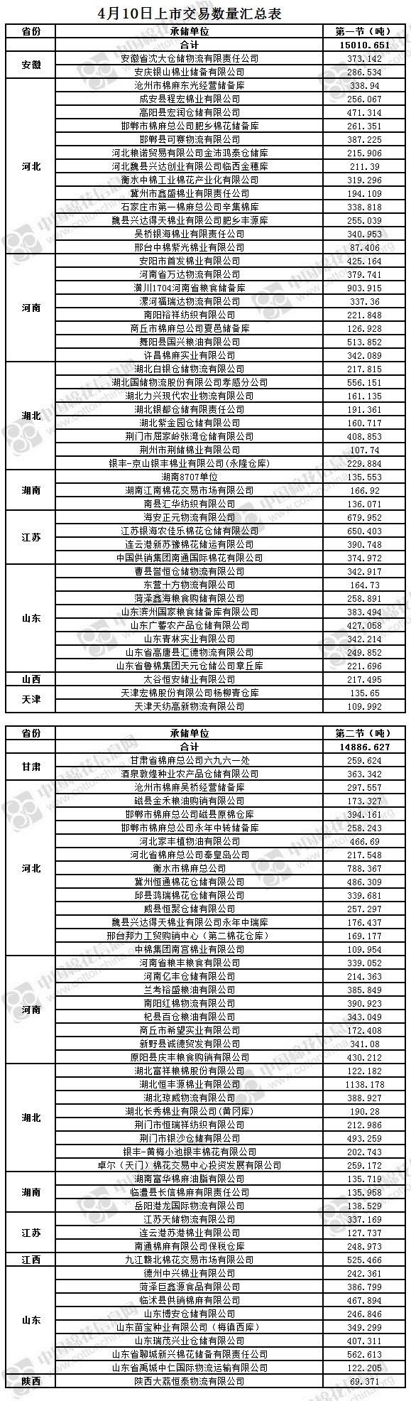 4月10日兩節(jié)共計(jì)輪出儲(chǔ)備棉29897.278噸。