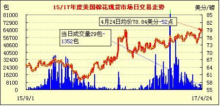 美國棉花現(xiàn)貨市場行情(04-24)
