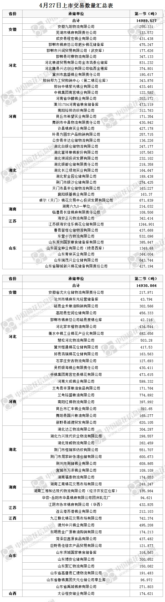 4月27日兩節(jié)共計輪出儲備棉29919.591噸。