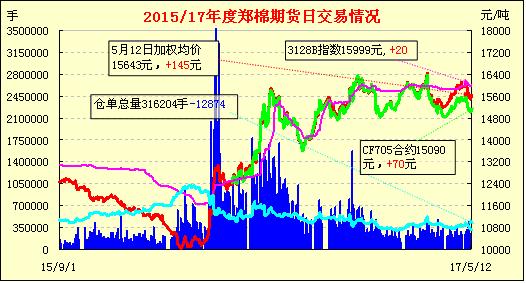5月12日隔夜鄭棉上漲,今日早盤在空頭回補推動下走高,日線形成陽線。日內(nèi)成交量放大,持倉量減少?;久媲闆r:近年,博州市通過土地流轉(zhuǎn)并地的全面推廣和高新節(jié)水技術(shù)及良種良法配套的實施,全州棉花單產(chǎn)逐年提升,植棉效益穩(wěn)步提高。為充分挖掘棉花生產(chǎn)內(nèi)部增收潛力,降低種植成本,進一步提高種植效益,促進農(nóng)牧民穩(wěn)定持續(xù)增收,今年博州大力推廣機采棉種植模式。截止5月8日全州完成機采棉種植模式132.64萬畝,完成計劃面積108萬畝的124.67%。