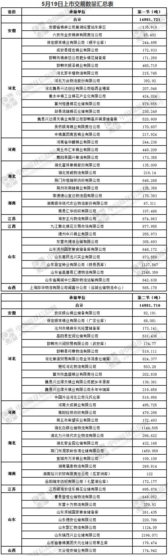5月19日兩節(jié)共計輪出儲備棉29963.44噸。