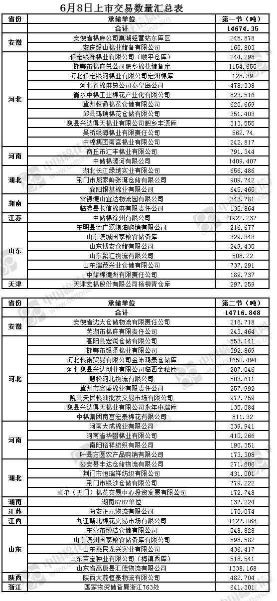 6月8日兩節(jié)共計輪出儲備棉29391.198噸。