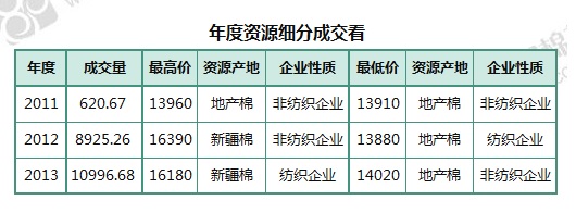 6月8日儲備棉輪出銷售資源29391.198噸,實(shí)際成交20542.612噸,成交率69.89%。當(dāng)日最高成交價(jià)16390元/噸(2012年度新疆棉),最低成交價(jià)13880元/噸(2012年度地產(chǎn)棉)。成交平均價(jià)格15129元/噸(較前一日價(jià)格跌3元/噸);折3128價(jià)格:16234元/噸(較前一日價(jià)格跌25元/噸)。當(dāng)日單捆最高加價(jià)1520元/噸(2013年度新疆棉2捆),單捆最低加價(jià)20元/噸(2012年度地產(chǎn)棉7捆;2013年度地產(chǎn)棉15捆)。紡織企業(yè)家數(shù)占比:67.61%,非紡織企業(yè)家數(shù)占比:32.39%。