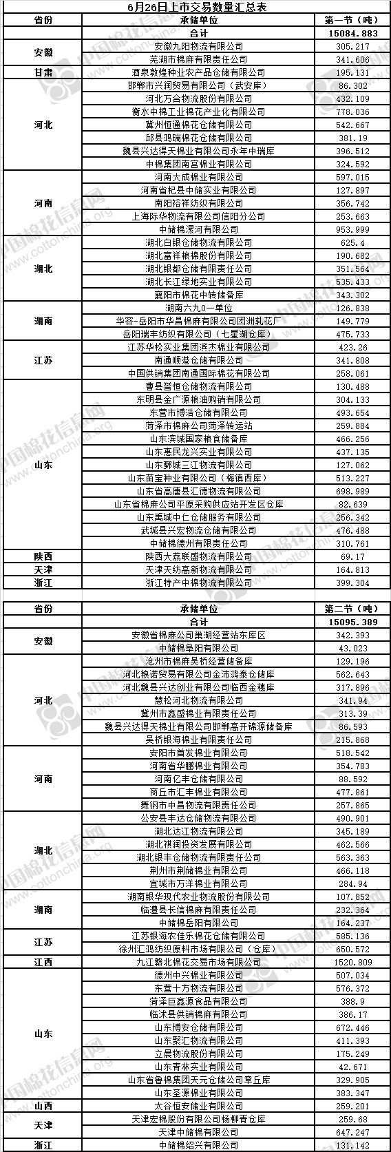 6月26日兩節(jié)共計輪出儲備棉30180.272噸。