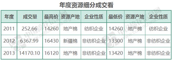 7月12日儲備棉輪出銷售資源30067.562噸,實際成交20790.745噸,成交率69.15%。當日最高成交價16430元/噸(2012年度新疆棉),最低成交價13300元/噸(2012年度地產(chǎn)棉)。成交平均價格14640元/噸(較前一日價格漲60元/噸);折3128價格:15894元/噸(較前一日價格漲182元/噸)。當日單捆最高加價2860元/噸(2013年度新疆棉),單捆最低加價20元/噸(2011年度地產(chǎn)棉1捆,2012年度地產(chǎn)棉4捆,2013年度地產(chǎn)棉9捆)。紡織企業(yè)家數(shù)占比:47.83%,非紡織企業(yè)家數(shù)占比:52.17%。