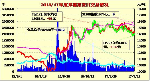 | CF805 | 14760 | 14875 | 14750 | 14820 | 14825 | 40 | 1900 | -258 | 52088 | 19294 | -28 |