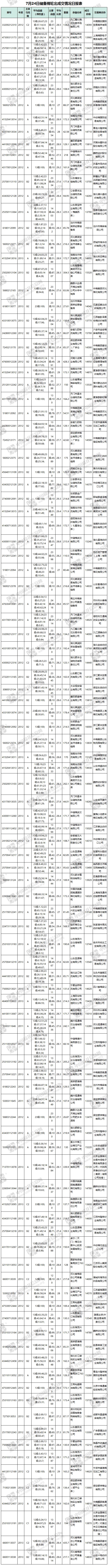 7月24日儲備棉輪出銷售資源29771.722噸,實際成交16997.304噸,成交率57.09%。當(dāng)日最高成交價16440元/噸(2012年度新疆棉),最低成交價13140元/噸(2012年度地產(chǎn)棉)。成交平均價格14620元/噸(較前一日價格跌43元/噸);折3128價格:15749元/噸(較前一日價格跌43元/噸)。當(dāng)日單捆最高加價2380元/噸(2013年度新疆棉),單捆最低加價20元/噸(2011年度地產(chǎn)棉1捆,2012年度地產(chǎn)棉10捆,2013年度地產(chǎn)棉8捆)。紡織企業(yè)家數(shù)占比:66.27%,非紡織企業(yè)家數(shù)占比:33.73%。