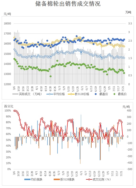 2017年3月6日至7月24日,儲備棉輪出累計成交201.66萬噸,成交率68.42%。