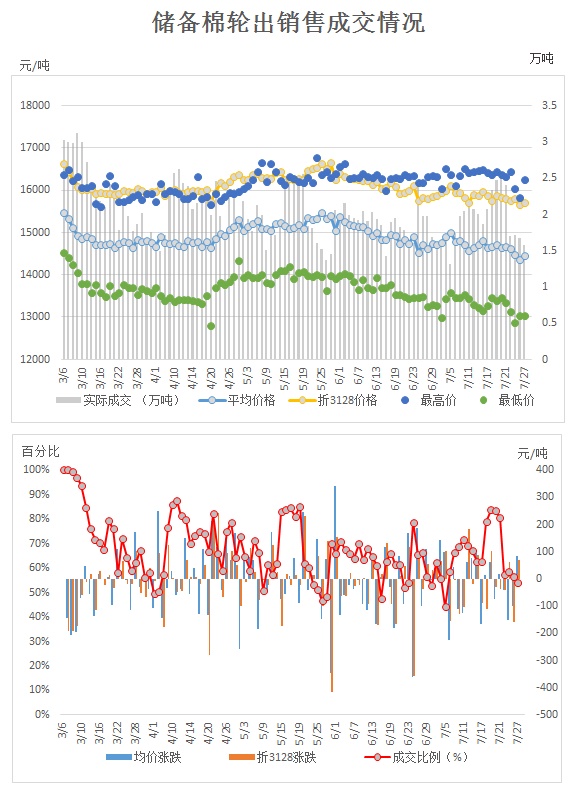 2017年3月6日至7月27日,儲備棉輪出累計成交206.62萬噸,成交率68.07%。