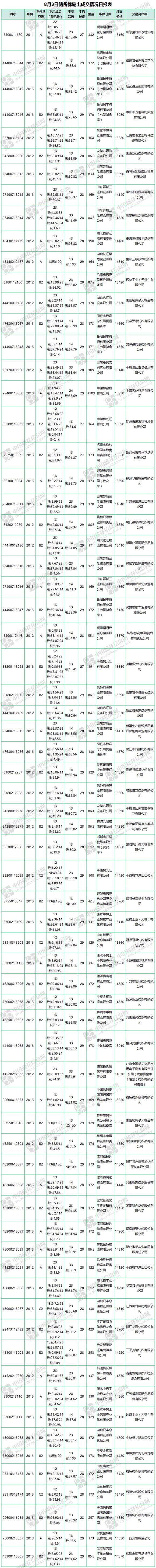 輪出評(píng)述(8.3):成交1.17萬(wàn)噸 成交率39.21%