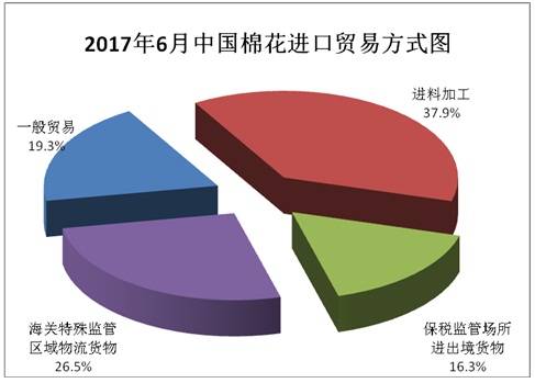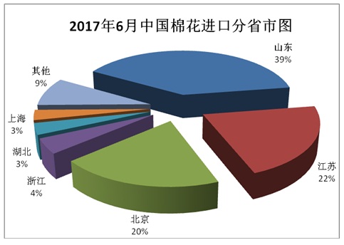 6月紡織品市場仍處于傳統(tǒng)淡季,儲備棉輪出繼續(xù)進(jìn)行,成交率保持穩(wěn)定,棉花進(jìn)口量連續(xù)3個月下降,同比基本持平。貿(mào)易方式中,只有保稅監(jiān)管場所進(jìn)出境貨物環(huán)比上漲,其余均下降,進(jìn)料加工占比接近4成,仍為最主要進(jìn)口方式;來源國中美國繼續(xù)排在第1位,所占比例為4成,澳大利亞仍排第2;配額使用以1%關(guān)稅為主,比例超過8成;進(jìn)口海關(guān)以青島、南京為主;進(jìn)口省市中山東、江蘇最多。