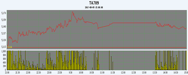 主力TA709合約當(dāng)日交易走勢(shì)