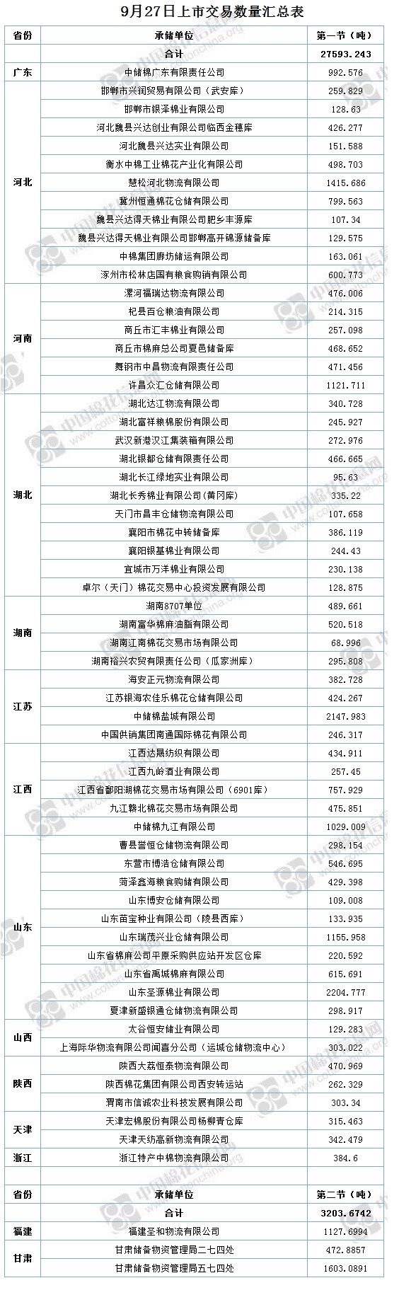 9月27日兩節(jié)共計(jì)輪出儲備棉30796.92噸。