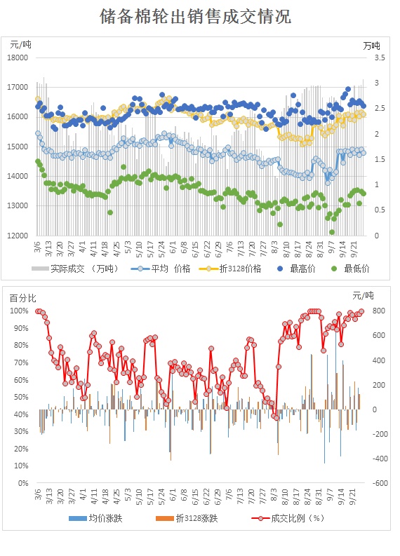 2017年3月6日至9月27日,儲(chǔ)備棉輪出累計(jì)成交316.33萬(wàn)噸,成交率73.26%。