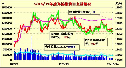 | CF711 | 15000 | 15095 | 14995 | 15035 | 15040 | 95 | 126970 | 14426 | 1209156 | 217528 | -11812 |