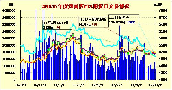 | TA711 | 5172 | 5198 | 5156 | 5176 | 5180 | 16 | 459534 | 32050 | 64448814 | 827948 | -37780 |