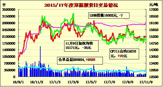 | 11月9日鄭棉期貨成交及持倉(cāng)排名表 | |||||||||