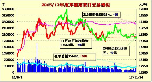 | CF801 | 14885 | 14940 | 14860 | 14910 | 14910 | -5 | 56538 | -28448 | 3372942 | 152746 | -7578 |