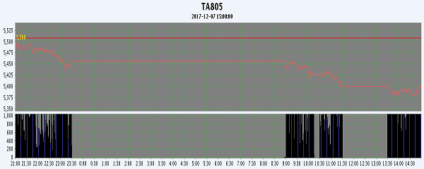 | TA805 | 5498 | 5500 | 5378 | 5398 | 5430 | -78 | 886510 | 31080 | 15412302 | 1005750 | -68238 |