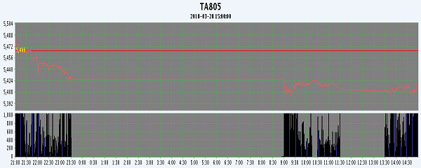 主力TA805合約當日交易走勢