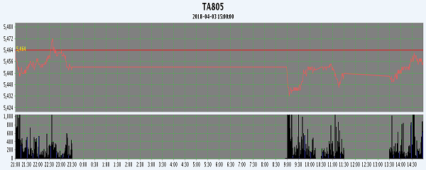 | TA805 | 5460 | 5476 | 5432 | 5456 | 5450 | -14 | 106496 | -176066 | 61634828 | 548740 | -21222 |