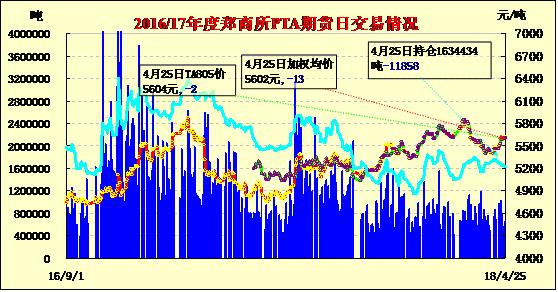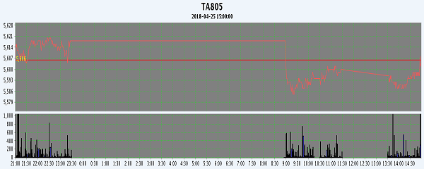 | TA805 | 5608 | 5642 | 5582 | 5604 | 5604 | -2 | 43694 | -1506 | 62714434 | 247092 | -18962 |