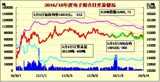 4日電子撮合交易成交量較前一交易日減少量較多,合同均價(jià)漲跌互現(xiàn)。其中MA1806成交量較大,為360噸;活躍交投的合同多集中于中期合同,MA1808訂貨量最大,累計(jì)訂貨量為7090噸。截止到2018年5月3日24時(shí),新疆地區(qū)皮棉加工總量503.35萬噸,同比增加24.7%。其中兵團(tuán)加工量150.54萬噸,地方加工量352.81萬噸,加工日增量70噸。農(nóng)二師機(jī)采疆棉2129、3129級(jí)濱州庫報(bào)價(jià)在16400-16600元/噸公定,新疆精河機(jī)采3128/4128級(jí)河南庫報(bào)價(jià)在15100-15400元/噸公檢毛重,疆棉機(jī)采巨野庫長度27強(qiáng)度27/28級(jí)報(bào)價(jià)在15300-15500元/噸公定自提。