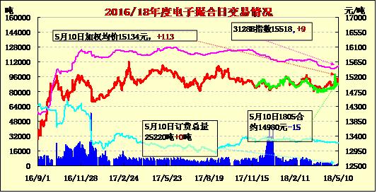 10日電子撮合交易成交量較前一交易日下降量較多,合同均價(jià)漲跌互現(xiàn)。其中MA1810成交量較大,為50噸;活躍交投的合同較為分散,MA1808訂貨量最大,累計(jì)訂貨量為7290噸。目前來看,美棉良好的出口銷售數(shù)據(jù)可能使USDA繼續(xù)上調(diào)美棉的出口數(shù)據(jù),而在6月中旬前超過5萬張的ON-CALL訂單面臨點(diǎn)價(jià)的需求,這對空頭極為不利,在ON-CALL訂單未大幅下降前,棉價(jià)將維持強(qiáng)勢。但7月合約結(jié)束后市場焦點(diǎn)將轉(zhuǎn)向下年度,天氣與供需將成為影響棉價(jià)的核心因素,按USDA數(shù)據(jù)來看全球供應(yīng)寬松,期末庫存處于高位水平,并不支持棉價(jià)維持強(qiáng)勢,在此情況下,雖然5月ICE期棉有望維持上漲,但不可追漲,對遠(yuǎn)期合約擇機(jī)賣出為宜。