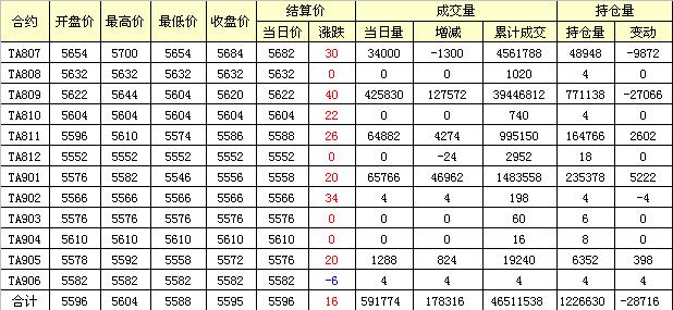 主力TA807合約當(dāng)日交易走勢